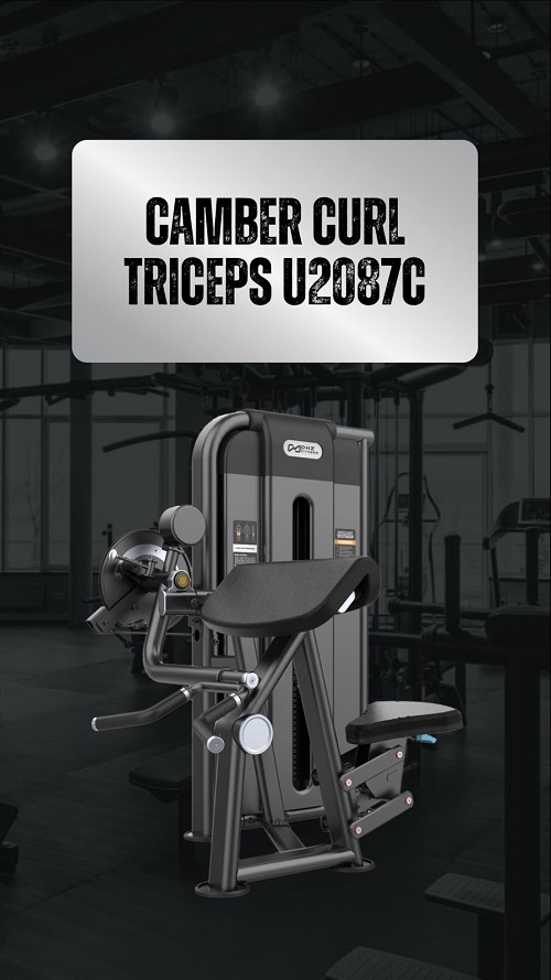 Mesin latihan trisep dengan desain camber untuk memberikan tekanan yang lebih optimal pada otot.